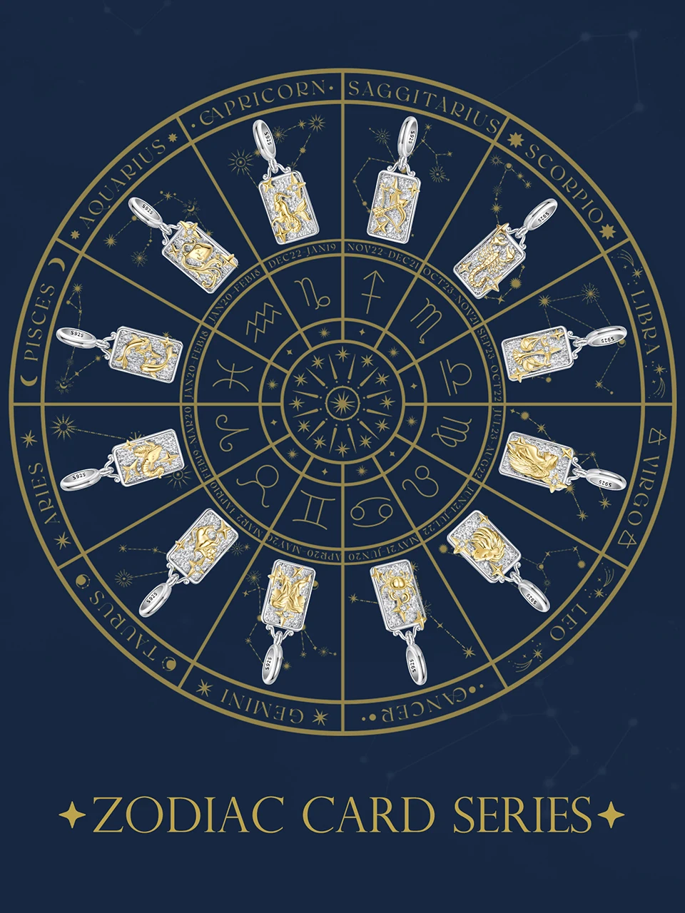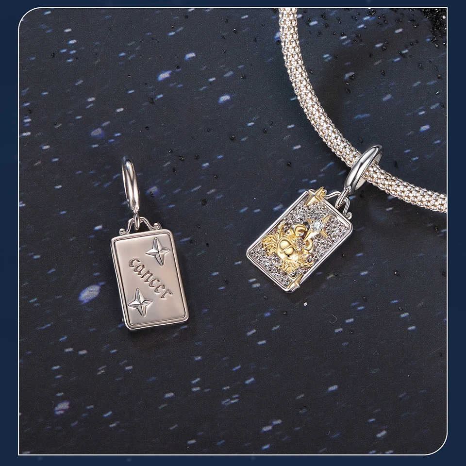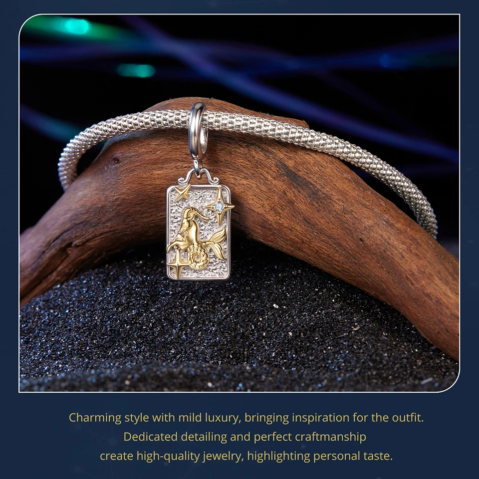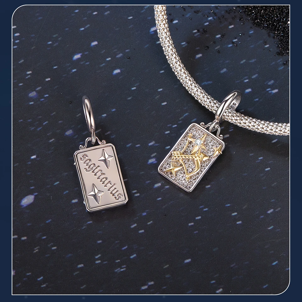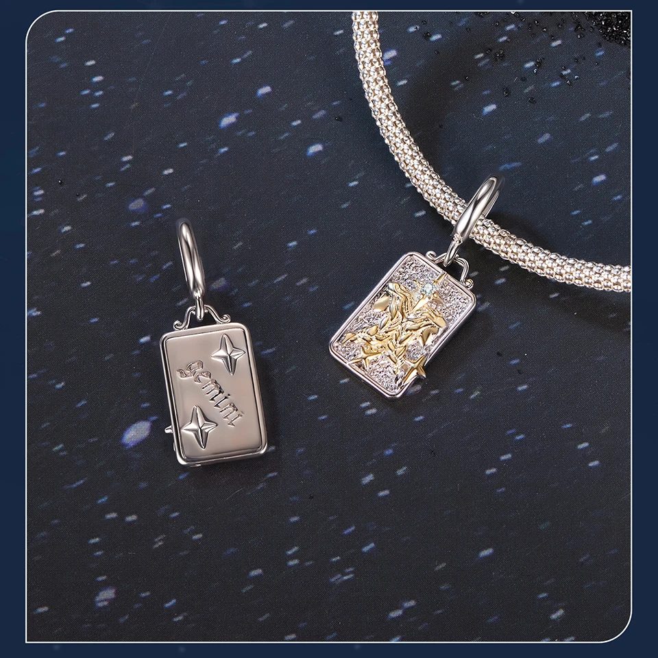 Zodiac Charms Sterling Silver 18K Gold Two-tone Rectangle Pendant