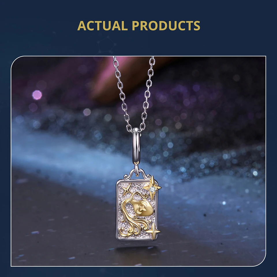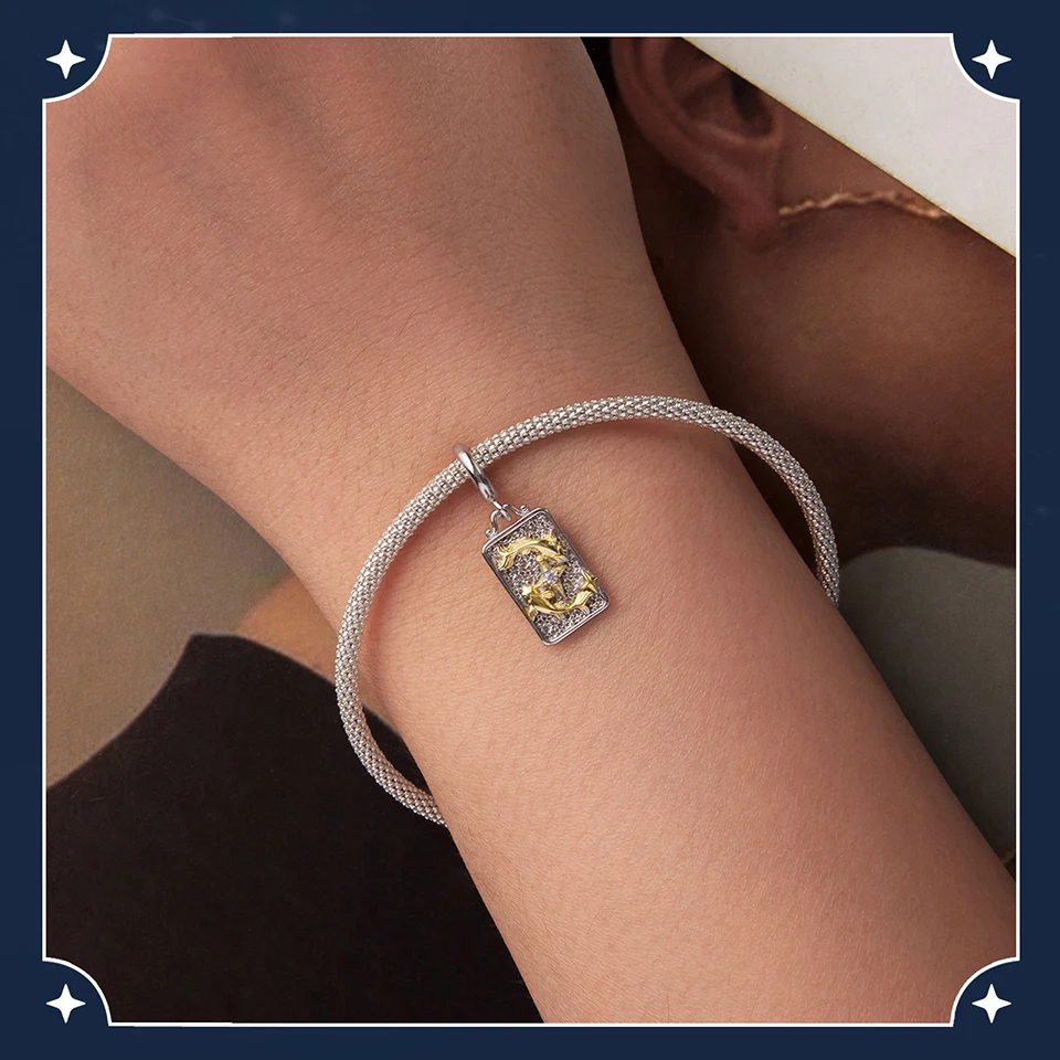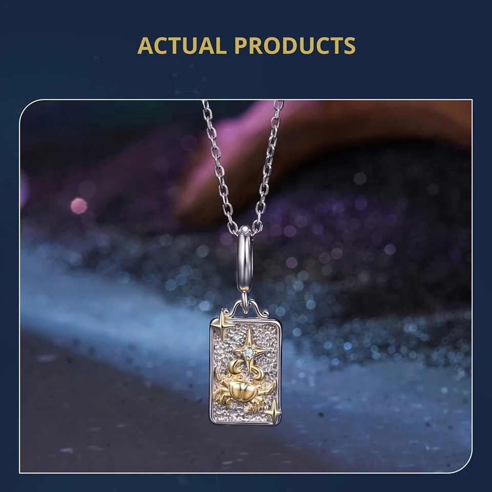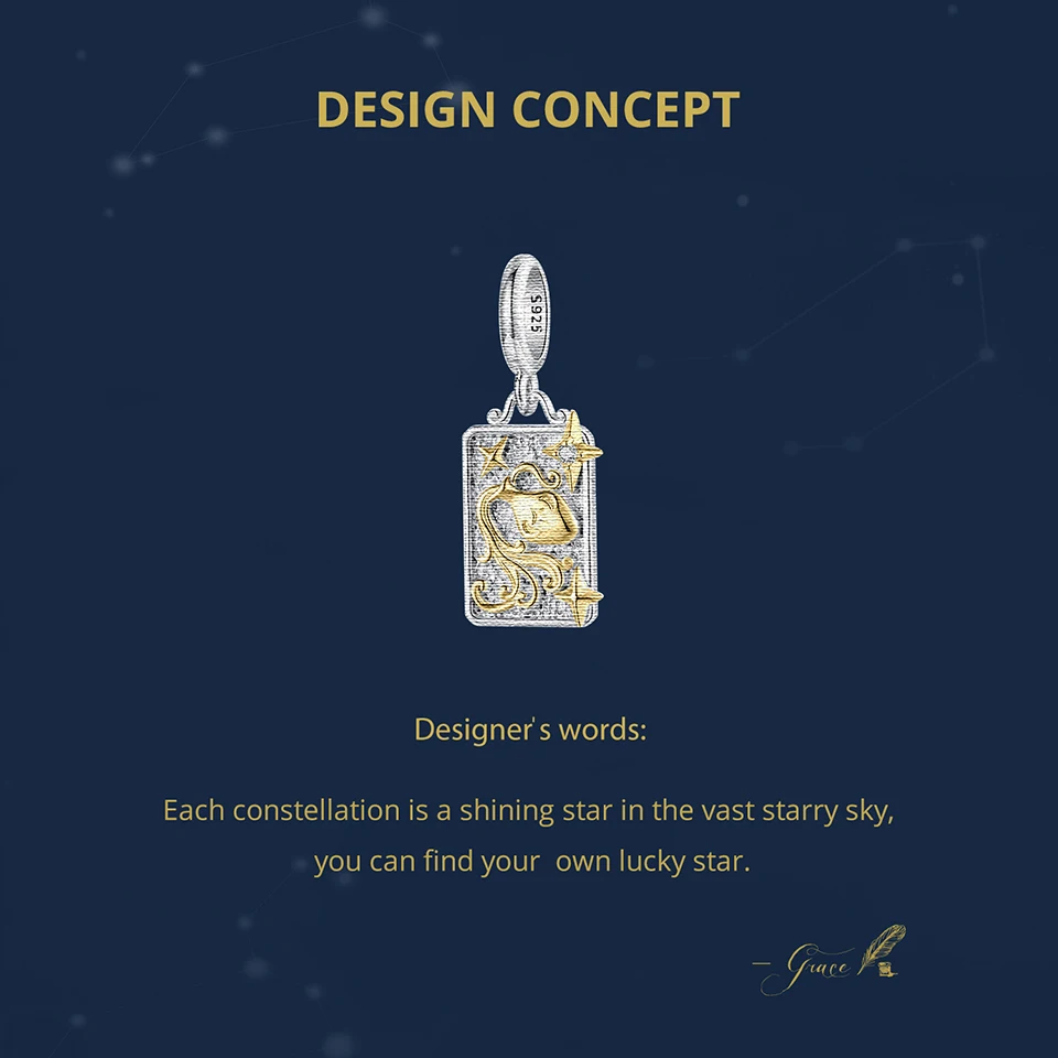 Zodiac Charms Sterling Silver 18K Gold Two-tone Rectangle Pendant