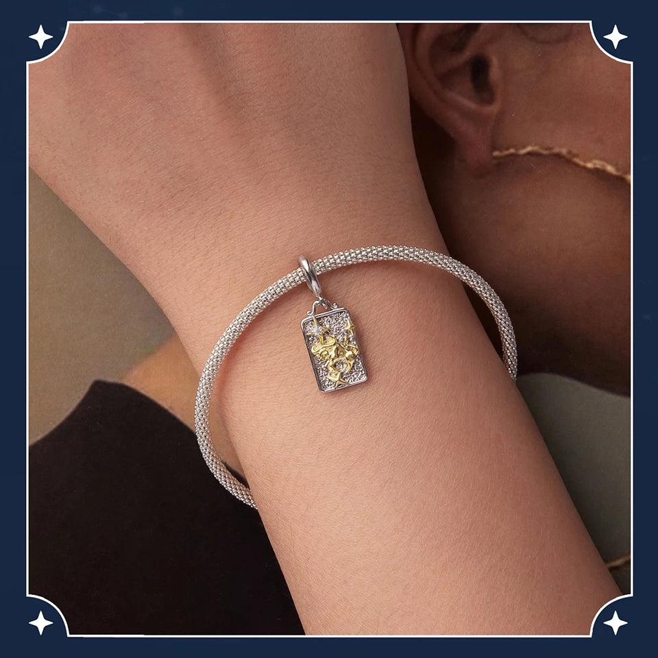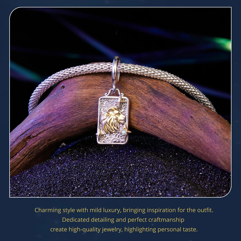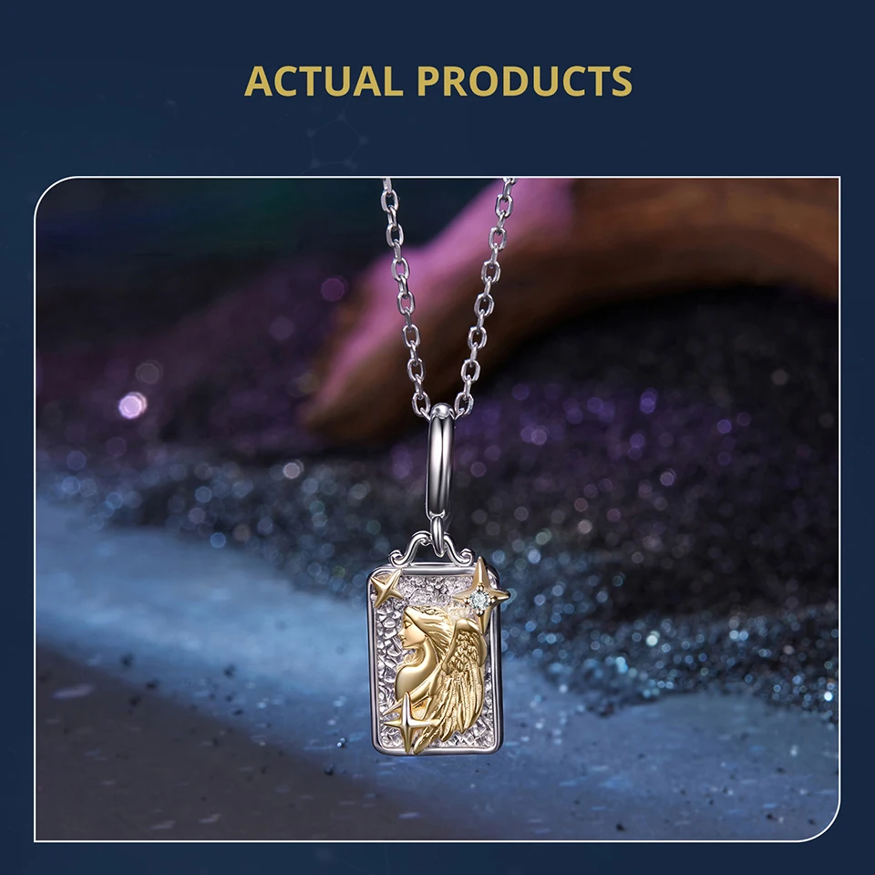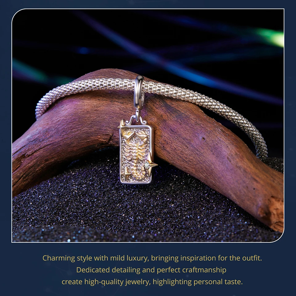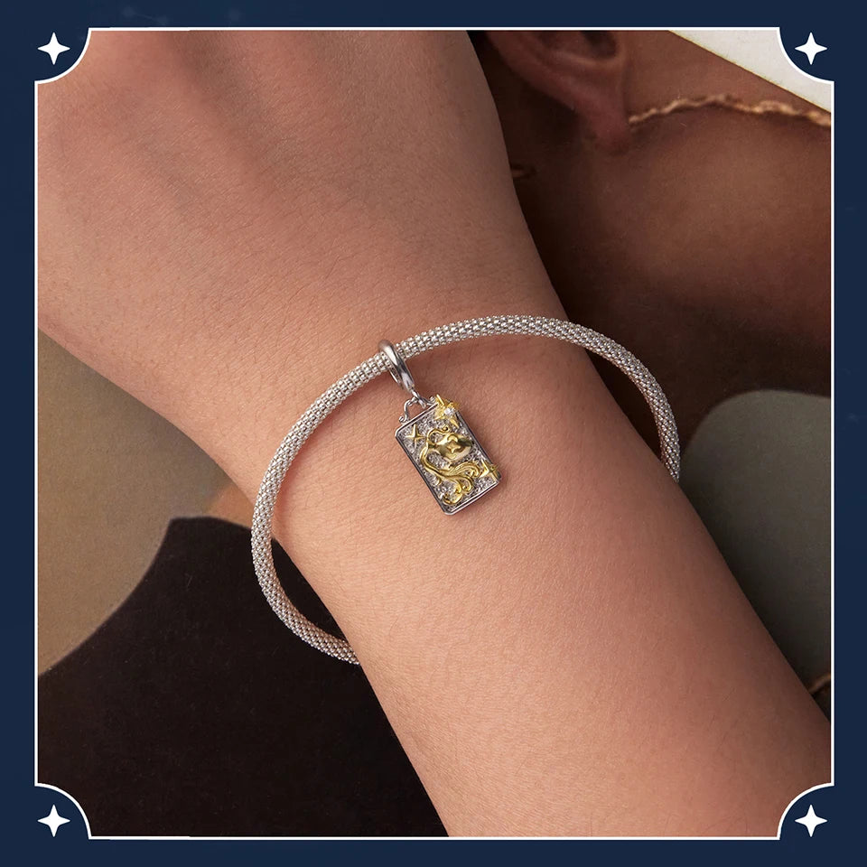 Zodiac Charms Sterling Silver 18K Gold Two-tone Rectangle Pendant